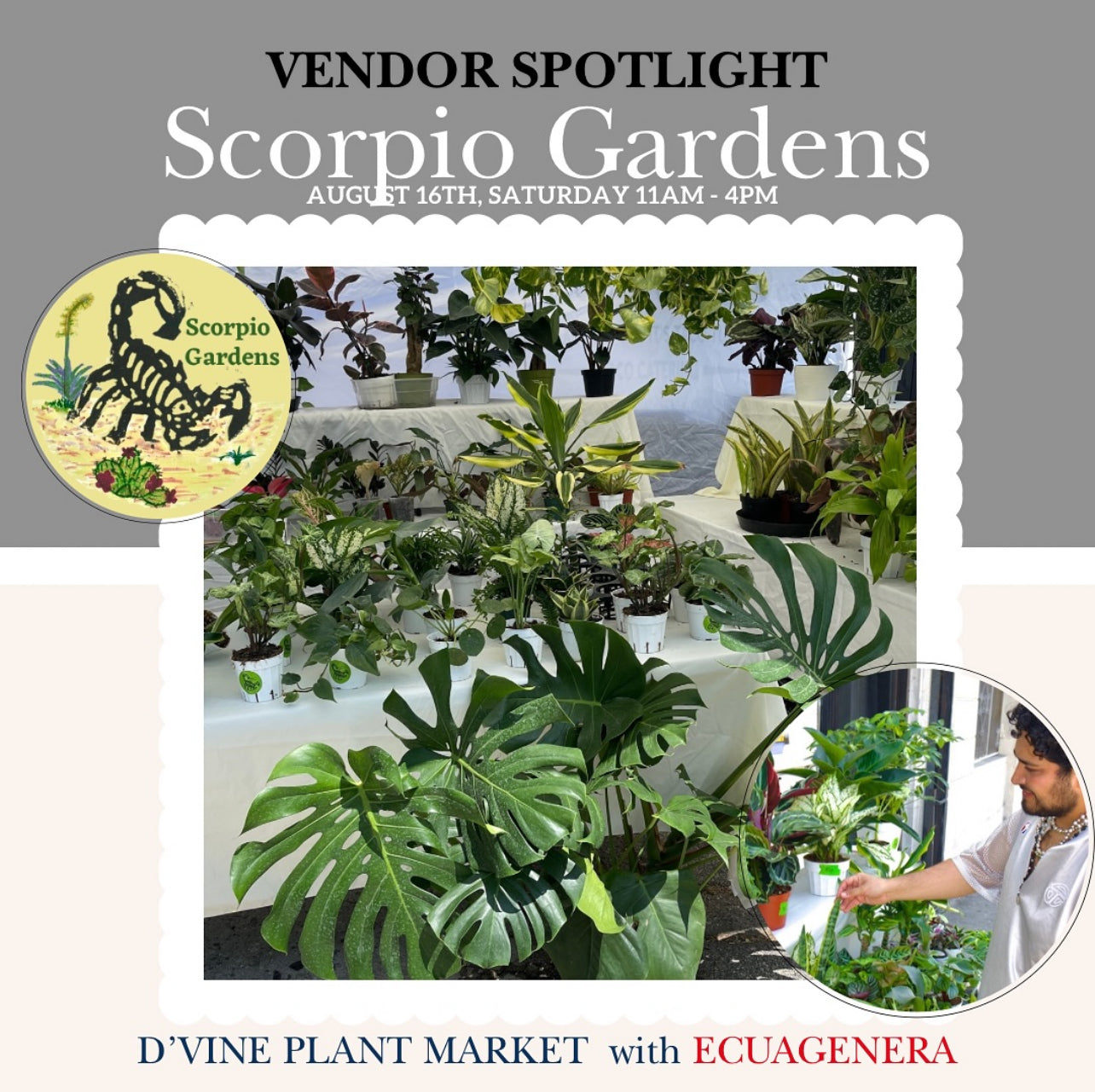 Scorpio Gardens will be pulling up for the first time to the D'Vine Plant Market happening in Bonsall, CA just North of San Diego. This new plant market is bringing together over 40 vendors to help close out the Ecuagenera chapter!