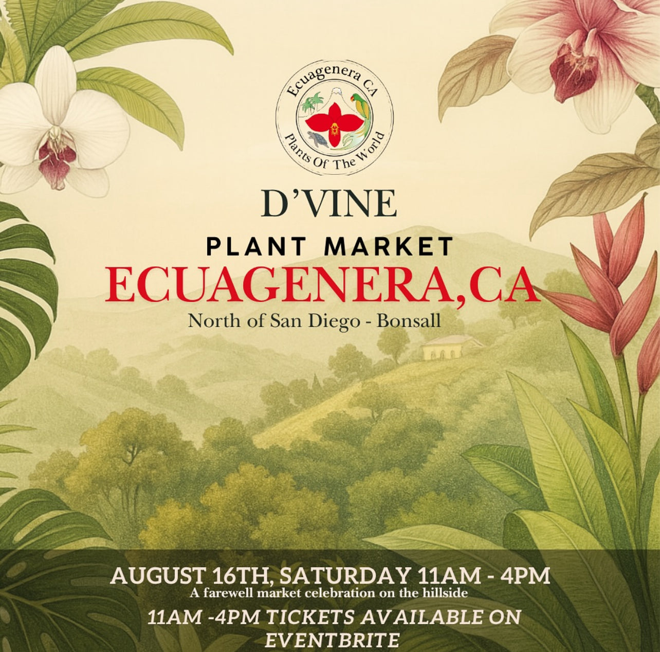 D'Vine Plant Market at Ecuagenera Nursery: Saturday August 16th 2025 Bonsall, CA